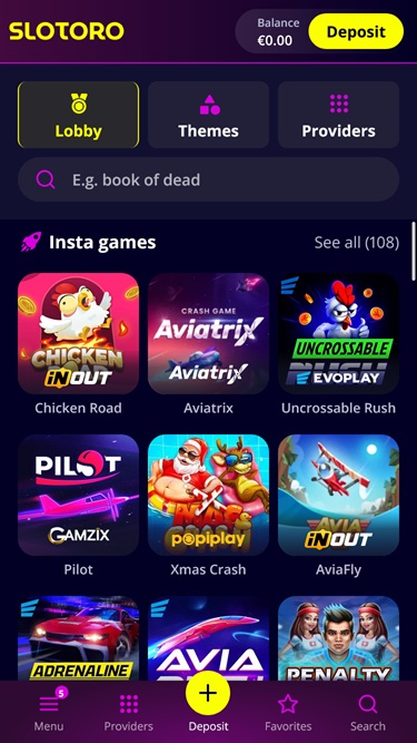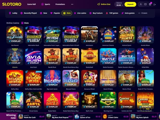 कैसीनो की गेमिंग लाइब्रेरी इवोप्ले, गैमज़िक्स, यग्द्रासिल, स्पिनोमेनल, इवोल्यूशन गेमिंग द्वारा संचालित है, और जैसा कि आप अनुमान लगा सकते हैं, स्लोटोरो शीर्ष ऑनलाइन स्लॉट की मेजबानी करता है, लेकिन अन्य गेम श्रेणियां भी सावधानीपूर्वक चुनी जाती हैं।