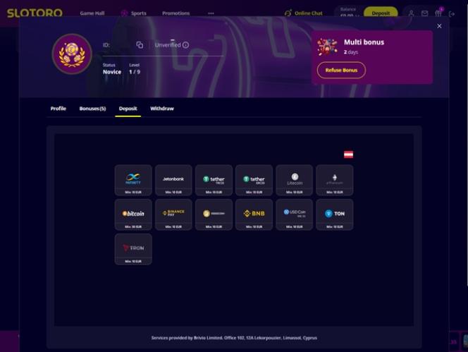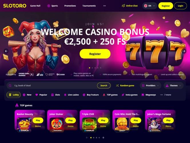 स्लोटोरो एक ऑनलाइन कैसीनो और स्पोर्ट्सबुक वेबसाइट है जो कुराकाओ के कानूनों के तहत पंजीकृत एक कंपनी द्वारा संचालित है और जर्मनी, पोलैंड, ऑस्ट्रिया और स्विट्जरलैंड के खिलाड़ियों के लिए उन्मुख है।