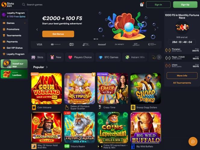 स्लोटोज़ेन एक ऑनलाइन जुआ ब्रांड है जिसका प्लेटफ़ॉर्म सरल और न्यूनतम डिज़ाइन किया गया है। कैसीनो एक लोकप्रिय लेआउट का उपयोग करता है जिसमें पेज हेडर के ठीक नीचे एक स्लाइड शो होता है। यह स्लाइड शो, निश्चित रूप से, सबसे आकर्षक उपलब्ध प्रचार सौदों को प्रस्तुत करता है। होमपेज का मध्य भाग स्लोटोज़ेन के विशाल गेमिंग ऑफ़र के लिए आरक्षित है, और फ़ुटर क्षेत्र कैसीनो सेवाओं और नियमों के बारे में अतिरिक्त जानकारी के लिए है।