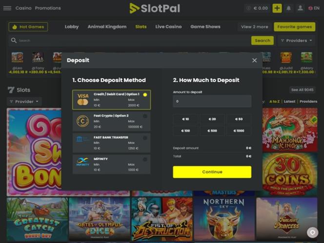 साइन-अप प्रक्रिया पूरी करने के बाद, आपको प्लेयर डैशबोर्ड का एक्सेस मिल जाएगा। आप इसे आसानी से इस्तेमाल कर पाएंगे, चाहे आप अपने पर्सनल कंप्यूटर या मोबाइल फोन से कैसीनो एक्सेस करें, क्योंकि स्लॉटपाल सभी उपलब्ध डिवाइसों के लिए रिस्पॉन्सिव और ऑप्टिमाइज़्ड है। इसका मतलब यह भी है कि चलते-फिरते कैसीनो गेम खेलना बेहद आसान होगा।