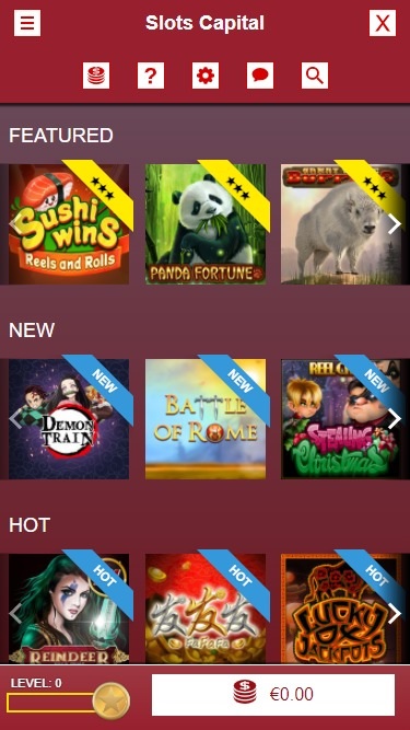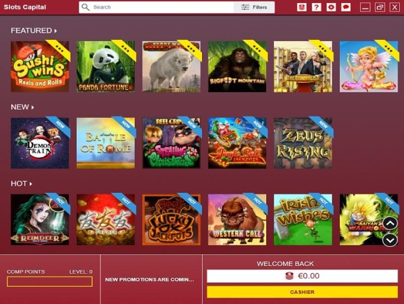 Slots कैपिटल BetSoft, Genesis Gaming, Rival, Saucify, Arrows Edge, Radi8 Games, Woohoo Games, Qora Games, Genii, Wager Gaming, Dragon Gaming and Dragoon Soft द्वारा संचालित है, जो इसे अपने ग्राहकों को टेबल गेम, स्लॉट और विशेष गेम की एक बड़ी श्रृंखला प्रदान करने की अनुमति देता है।अन्य खेल
