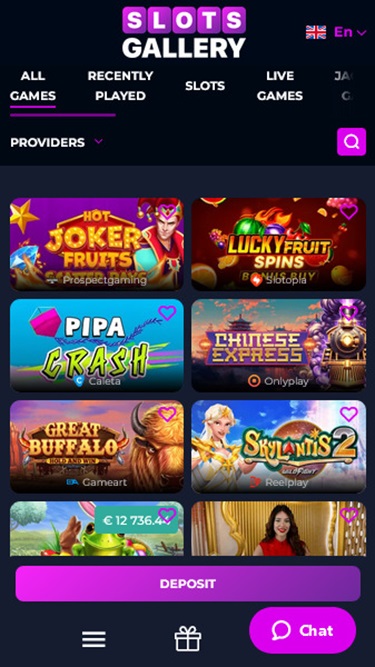 स्लॉट्स गैलरी कैसीनो सिर्फ़ "स्लॉट्स" तक सीमित नहीं है, बल्कि, जैसा कि अपेक्षित था, यह सबसे प्रभावशाली गेम श्रेणी है। यह ऑपरेटर सभी स्तरों और रुचियों के जुआरियों के लिए लगभग पाँच हज़ार स्लॉट्स उपलब्ध करा रहा है।