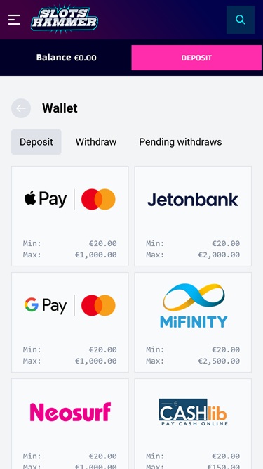न्यूनतम जमा: 25 यूरो. अधिकतम दांव: 5 यूरो.