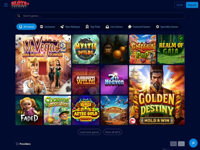 स्लॉट्स जैकपॉट कैसीनो BetSoft, Genesis Gaming, Rival, Saucify, Vivo Gaming, Spinomenal, Felix Gaming, Fugaso, Radi8 Games, Fresh Deck Studios, Woohoo Games, Qora Games, SmartSoft Gaming, Tom Horn Gaming, Genii, Wager Gaming, Dragon Gaming and Dragoon Soft द्वारा संचालित है, और इसके कैसीनो गेम एक वेब-आधारित इंस्टेंट प्ले प्लेटफ़ॉर्म के माध्यम से उपलब्ध कराए जाते हैं जो आपको अपने कंप्यूटर के इंटरनेट ब्राउज़र के माध्यम से कैसीनो गेम खेलने की सुविधा देता है। कैसीनो मोबाइल प्ले को भी सपोर्ट करता है, जिससे आप अपने स्मार्टफोन या टैबलेट के ज़रिए कहीं भी, जहाँ भी आपके पास डेटा कनेक्शन हो, कैसीनो गेम खेल सकते हैं।अन्य खेल
