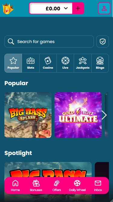 स्लॉट्स किंगडम कैसीनो Microgaming, Net Entertainment, Playtech, 1x2gaming, Barcrest, Big Time Gaming, ELK Studios, lightningboxgames, Oryx, Play'n GO, playson, Quickspin, Thunderkick, Yggdrasil, Wazdan, Realistic Games, Booming Games, Pragmatic Play, Nolimit City, Red Tiger Gaming, Spinomenal, Red Rake Gaming, FunFair, Spin Games, Triple Edge Studios, Northern Lights Gaming, Stormcraft Studios, Switch Studios, Bulletproof Games, All41 Studios, Gluck Games, Gameburger Studios, Pulse 8 Studios, Neon Valley Studios, Golden Rock Studios, Shuffle Master, SpinPlay Games, HungryBear Gaming, Real Dealer Studios, GONG Gaming, Blue Guru Games, On Air Entertainment, Buck Stakes Entertainment, Design Works Gaming, Games Global, 2by2 Gaming, Ash Gaming, Bally Technologies, bluberi, Blueprint Gaming, Jumpman Gaming, Leander Games, Merkur Gaming, NextGen, NYX Interactive, Tom Horn Gaming, Inspired Gaming, Gaming Realms, SG Interactive, Gamomat, Red7Mobile, Scientific Games, Reel Time Gaming, Authentic Gaming, Iron Dog Studio, Old Skool Studios, Foxium, Betdigital, Just For The Win, The Games Company, Reflex Gaming, MetaGU, PearFiction Studios, Wild Streak Gaming, Slingshot Studios, Fortune Factory Studios, Jade Rabbit Gaming, 4ThePlayer, AvatarUX, Gamevy, Crazy Tooth Studio, ReelPlay, Alchemy Gaming, Rarestone Gaming, Snowborn Games, Boomerang Studios, Hacksaw Gaming, Max Win Gaming, Gold Coin Studios, Bang Bang Games, Half Pixel Studios, Peter And Sons, Aurum Signature Studios, Lucksome Gaming, Area Vegas, RAW iGaming, Wishbone Games, Circular Arrow, HammerTime Games, INO Games, Nailed It! Games, Atomic Slot Lab, Neko Games, Reel Kingdom, Oros Gaming, Indigo Magic and Light & Wonder द्वारा संचालित है और एक वेब-आधारित इंस्टेंट प्ले प्लेटफ़ॉर्म के माध्यम से उपलब्ध है। इसका मतलब है कि कैसीनो सीधे आपके वेब ब्राउज़र के माध्यम से लोड होता है और किसी डाउनलोड की आवश्यकता नहीं होती। कैसीनो मोबाइल प्ले को भी पूरी तरह से सपोर्ट करता है, जिससे आप अपने स्मार्टफोन या टैबलेट पर गेम एक्सेस कर सकते हैं।