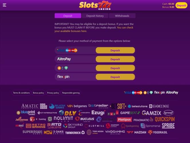 स्लॉट्स777.कैसीनो को कुराकाओ गेमिंग अथॉरिटी द्वारा लाइसेंस और विनियमित किया जाता है। यह ब्रांड कनाडा, न्यूज़ीलैंड, नॉर्वे, जर्मनी और फ़िनलैंड के खिलाड़ियों का स्वागत करता है।