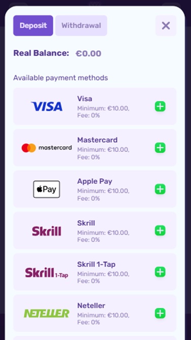 कैसीनो में जमा और निकासी करना एक आसान काम है क्योंकि कैसीनो भुगतान कार्ड, ई-वॉलेट और क्रिप्टोकरेंसी भुगतान विकल्पों सहित विभिन्न लोकप्रिय भुगतान विकल्प प्रदान करता है।