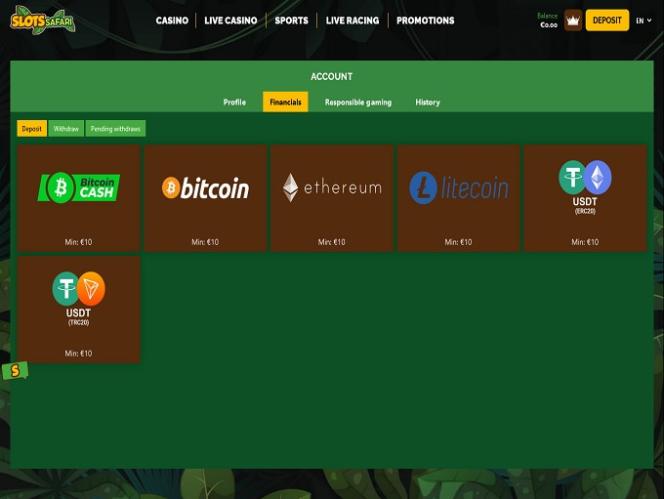 स्लॉट्ससफारी विभिन्न लोकप्रिय क्रिप्टो बैंकिंग विधियों का समर्थन करता है, लेकिन यदि आप अन्य भुगतान विकल्पों का उपयोग करना पसंद करते हैं, तो ध्यान दें कि, इस कैसीनो में, केवल कुछ भुगतान कार्डों का उपयोग करना संभव है।