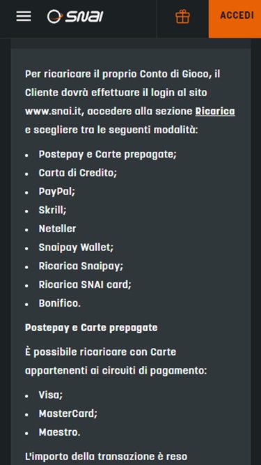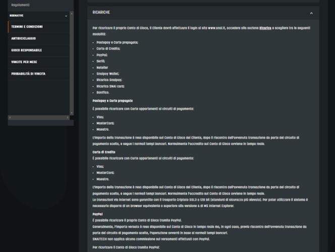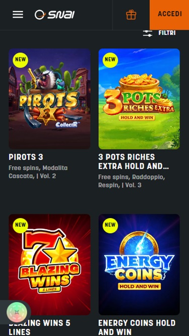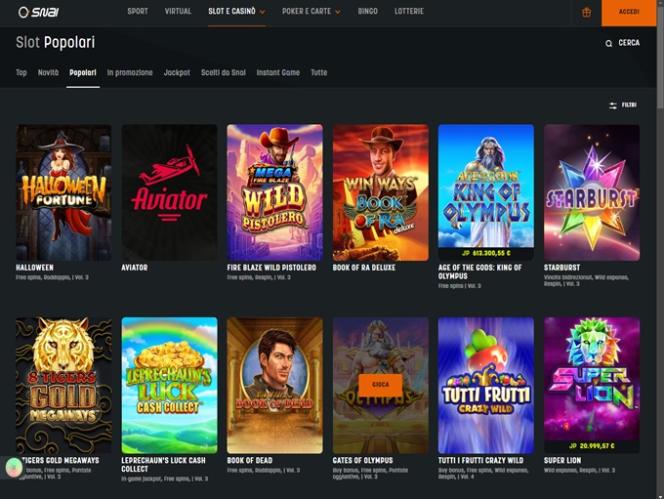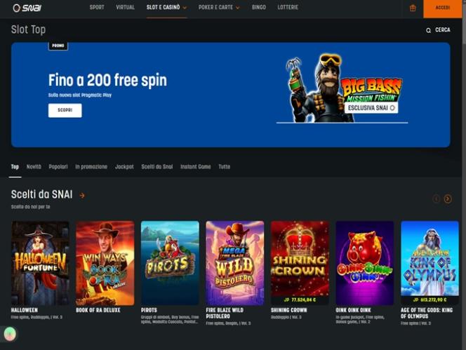 SNAI का इटलीवासियों को सट्टेबाजी सेवाएँ प्रदान करने का एक लंबा इतिहास रहा है। कंपनी ने शुरुआत में एक स्पोर्ट्सबुक के रूप में काम किया था, लेकिन बाद में अपने ग्राहकों को लॉटरी, बिंगो और कैसीनो गेम्स की पेशकश करने के लिए इसका विस्तार किया। देश में आधिकारिक रूप से स्वीकृत, SNAI इटली में मिलने वाले सर्वोत्तम विकल्पों में से एक है। यह तेज़ भुगतान, अच्छे RTP आँकड़े और खिलाड़ियों के लिए दैनिक स्पिन बोनस प्रदान करता है। अगर आप इटली में रहते हैं, तो SNAI एक ऐसी जगह है जहाँ आपको निश्चित रूप से खेलना चाहिए।