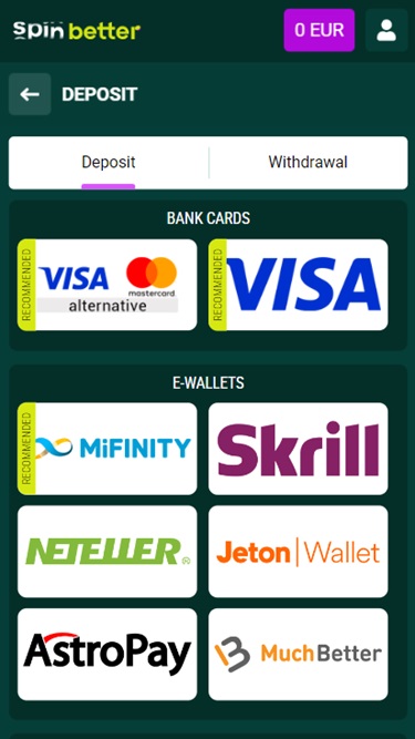 यह ऑनलाइन कैसीनो क्रिप्टो सट्टेबाजों के लिए आसानी से एक सच्चा जुआ स्वर्ग बन सकता है क्योंकि यह इतने विश्वसनीय क्रिप्टोकरेंसी भुगतान तरीके प्रदान करता है कि खिलाड़ी निश्चित रूप से उन्हें पसंद करेंगे। क्रिप्टो के अलावा, ई-वॉलेट, क्रेडिट और डेबिट कार्ड और अन्य प्रकार की इलेक्ट्रॉनिक इंटरनेट भुगतान प्रणालियाँ जैसे विभिन्न बैंकिंग विकल्प भी उपलब्ध हैं।