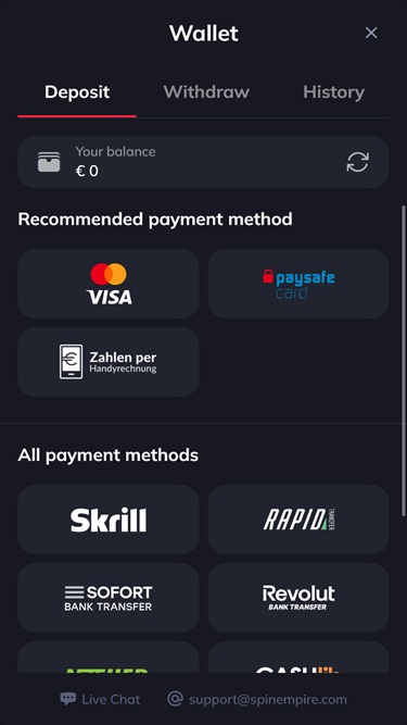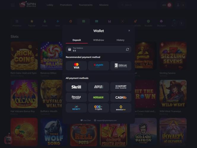 SpinEmpire Casino पर बैंकिंग विकल्प