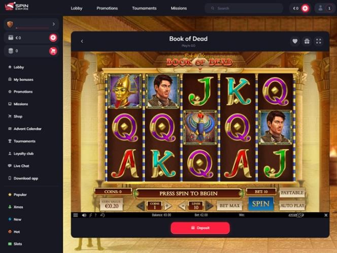 जैसा कि उम्मीद थी, स्पिनएम्पायर एक ऑनलाइन कैसीनो है जो अपने ब्रांड नाम के अनुरूप, लगभग पांच हजार टाइटल्स के साथ एक समृद्ध स्लॉट गेम संग्रह और आकर्षक सामग्री प्रदान करता है जिसे इस लोकप्रिय गेम के प्रशंसक निश्चित रूप से सराहेंगे।