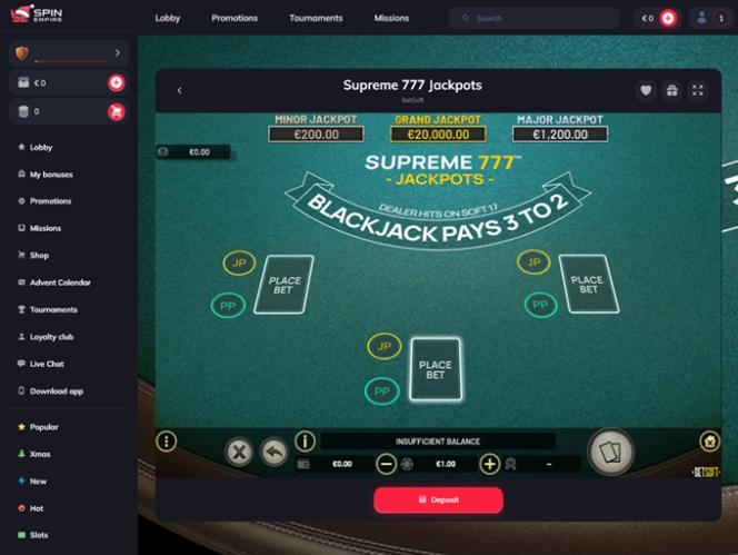 SpinEmpire Casino Blackjack (1x2gaming)बढ़ाना