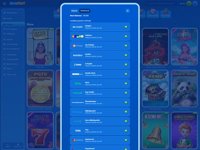 यद्यपि ऑपरेटर आपके द्वारा उपयोग की जाने वाली भुगतान विधि के संबंध में आपकी इच्छाओं को पूरा करने का प्रयास करेगा, फिर भी स्पिनफेस्ट को अनुरोधित विधि के अलावा किसी अन्य बैंकिंग विधि से निकासी की प्रक्रिया करने का अधिकार है।