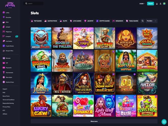 यह ऑपरेटर कई ऑनलाइन कैसीनो गेम डेवलपर्स के साथ सहयोग करता है, और इसी कंपनी द्वारा संचालित पूरा कैसीनो नेटवर्क गेम आपूर्तिकर्ताओं की एक लंबी सूची द्वारा संचालित होता है, जिसमें उद्योग के अग्रणी और हाल ही में iGaming क्षेत्र में शामिल हुए स्टूडियो दोनों शामिल हैं। स्पिनफीवर कैसीनो के कुछ गेम आपूर्तिकर्ता माइक्रोगेमिंग, बेटसॉफ्ट, इवोल्यूशन गेमिंग और अन्य कंपनियां हैं।