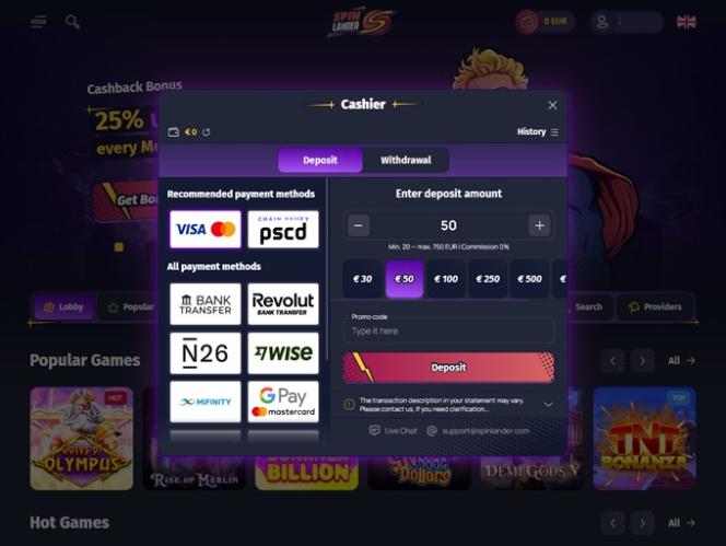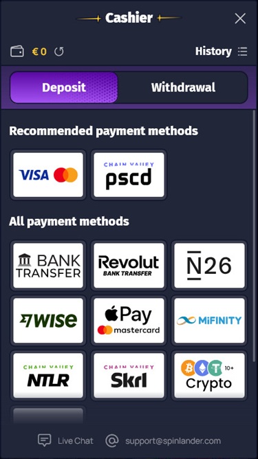 स्पिनलैंडर कैसीनो एक आधुनिक जुआ साइट है जिसमें iGaming गतिविधियों और खेलों की एक विस्तृत सूची है। खिलाड़ी हज़ारों असली पैसे वाले स्लॉट, टेबल गेम, लाइव डीलर और वर्चुअल स्पोर्ट्स विकल्पों का अनुभव कर सकते हैं, साथ ही विभिन्न प्रचारों, कार्यक्रमों और बोनस में भी भाग ले सकते हैं। यह ब्रांड कई पारंपरिक भुगतान विधियों के अलावा बिटकॉइन जैसी क्रिप्टोकरेंसी भी स्वीकार करता है, जिससे खिलाड़ियों को बैंकिंग में काफ़ी सुविधा मिलती है।