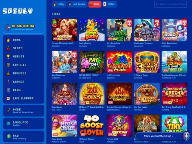 लॉबी में स्लॉट, लाइव कैसीनो और टेबल गेम उपलब्ध हैं, जो कैसीनो की पेशकशों का आनंद लेने में रुचि रखने वाले सभी ऑनलाइन गेमिंग उत्साही लोगों के लिए पर्याप्त से अधिक है।