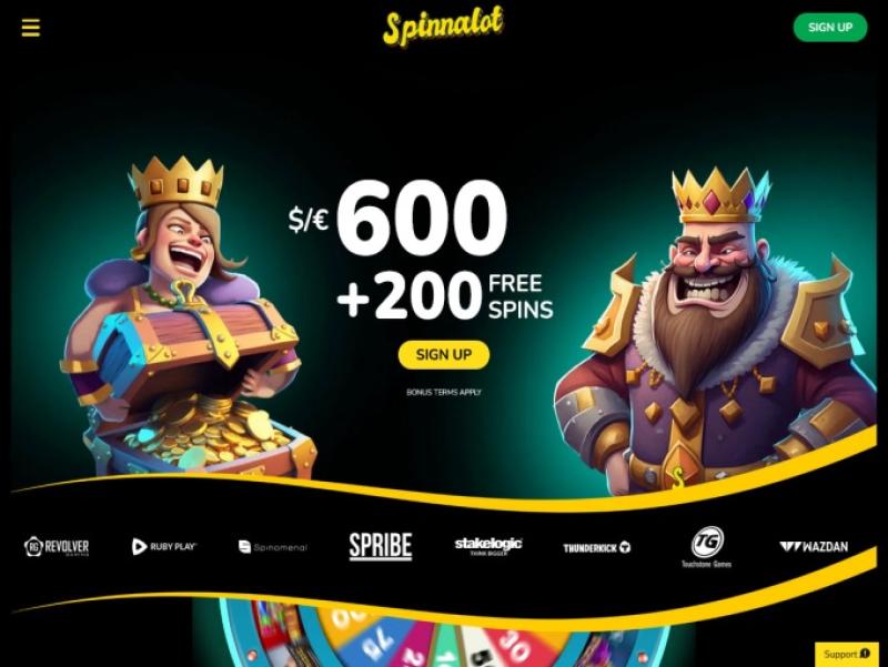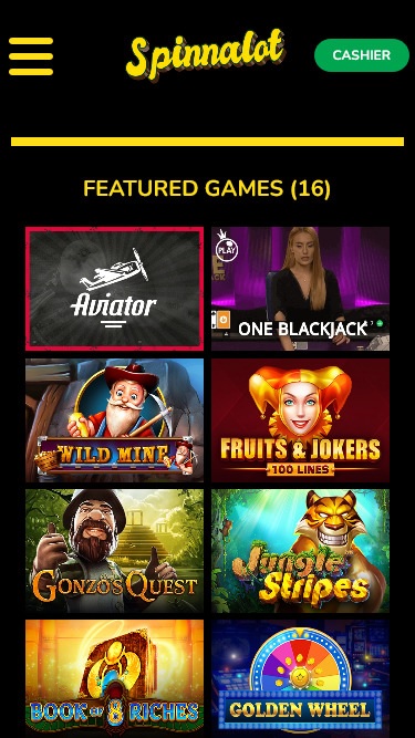 होमपेज पर एक बड़ा प्रमोशनल बैनर प्रदर्शित है जिसमें स्पिनलॉट पर सट्टेबाजों को मिलने वाले कुछ लाभों की जानकारी दी गई है। आकर्षक डिज़ाइन वाले अवतार खिलाड़ियों को आसान और सरल पंजीकरण प्रक्रिया से सीधे स्वागत बोनस ऑफ़र और अन्य सभी वफादार कैसीनो सदस्यों के लिए बनाए गए अन्य प्रमोशनल सौदों तक ले जाएँगे।