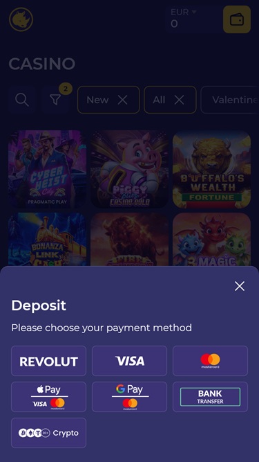 यह कैसिनो फिएट मुद्राओं और क्रिप्टोकरेंसी दोनों को स्वीकार करता है।