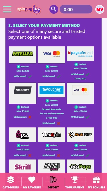 डेस्कटॉप प्लेटफॉर्म संस्करण में शामिल सभी ऑनलाइन कैसीनो गेम मोबाइल कैसीनो गेमिंग लाइब्रेरी का भी हिस्सा हैं क्योंकि स्पिनपग नवीनतम उपलब्ध तकनीक का उपयोग कर रहा है, सभी iGaming रुझानों का पालन करता है और चलते-फिरते उत्कृष्ट गेमिंग अनुभव प्रदान करता है।