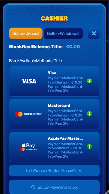 💸 न्यूनतम निकासी€10/ €60 (Bitcoin)