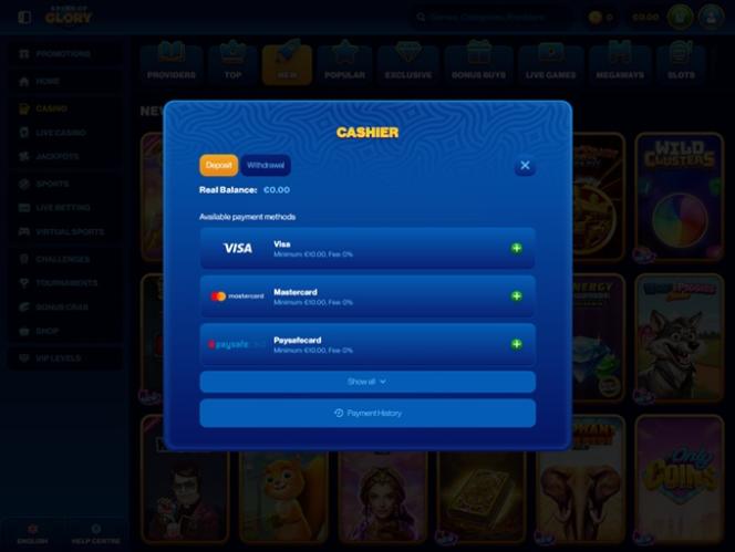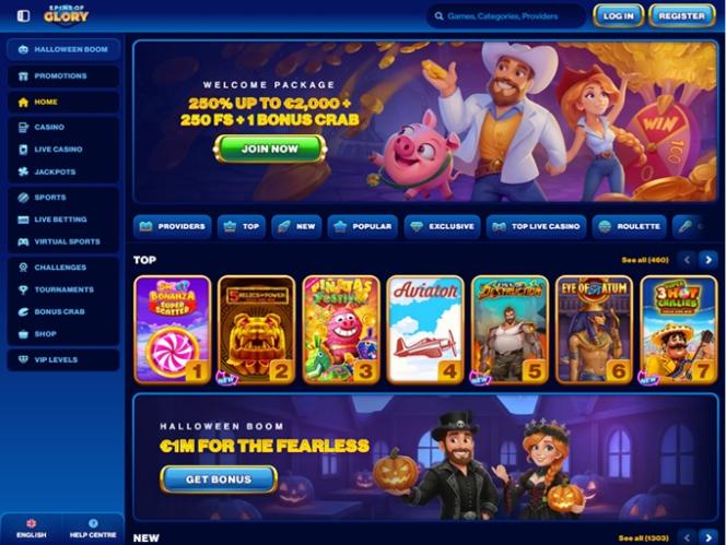 स्पिन्स ऑफ़ ग्लोरी एक बेहतरीन ऑनलाइन कैसीनो और स्पोर्ट्स बेटिंग वेबसाइट है जो खिलाड़ियों को ढेर सारे गेम्स और मनोरंजन के विकल्प प्रदान करती है, जिनमें असली पैसे वाले स्लॉट, लाइव डीलर, टेबल गेम्स और क्रैश गेम्स शामिल हैं। यह ढेरों प्रमोशन और बोनस भी प्रदान करती है जो कैसीनो खिलाड़ियों और स्पोर्ट्स बेटर्स, दोनों के अनुभवों को और बेहतर बना देंगे। खिलाड़ियों के पास अपने फंड्स का प्रबंधन करते समय बिटकॉइन और कई अन्य विकल्पों सहित कई क्रिप्टोकरेंसी का उपयोग करने का विकल्प भी होगा।