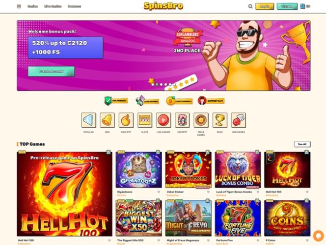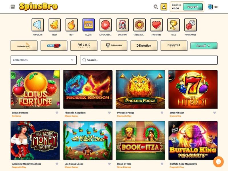 आप कुछ बेहतरीन स्लॉट गेम्स खेल पाएँगे क्योंकि स्पिन्सब्रो में उद्योग के कुछ सबसे बड़े प्रदाता मौजूद हैं। इनमें से कुछ सबसे लोकप्रिय हैं: पुश गेमिंग, प्रैगमैटिक प्ले , प्ले 'एन गो, रेला गेमिंग, रूबी प्ले, प्लेपर्ल्स, और कई अन्य।