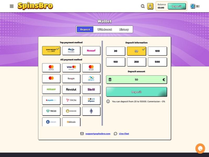 SpinsBro Casino पर बैंकिंग विकल्प
