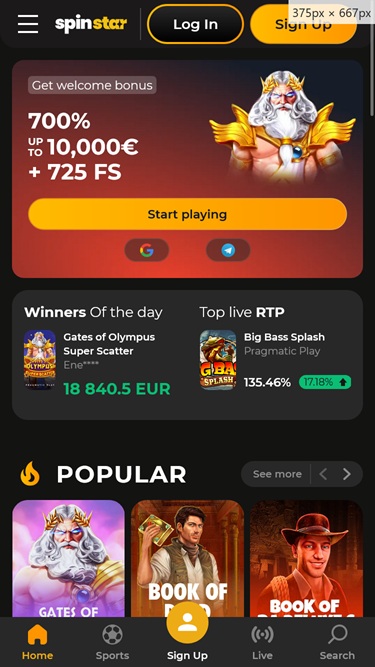 स्पिनस्टार कैसीनो एक ऑनलाइन कैसीनो और खेल सट्टेबाजी वेबसाइट है जो कोस्टा रिका जुआ आयोग द्वारा विनियमित और लाइसेंस प्राप्त है। यह मुख्य रूप से नीदरलैंड और ग्रीस के खिलाड़ियों पर केंद्रित है। यह कैसीनो ग्रीक, अंग्रेजी और फ्रेंच भाषाओं में उपलब्ध है, और इसने हमें इसके ग्राफिक समाधान और इसके वातावरण की अच्छी छाप दी।