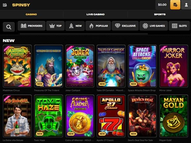 स्पिन्सी कैसीनो अपने खिलाड़ियों को 150 से ज़्यादा अद्वितीय सॉफ़्टवेयर डेवलपर्स के गेम खेलने का मौका देता है, जो निस्संदेह एक बड़ी संख्या है जिसके परिणामस्वरूप हज़ारों गुणवत्तापूर्ण, विविध शैलियों के गेम उपलब्ध होते हैं। नामों की इस विशाल सूची में उद्योग के अग्रणी प्रदाता और उभरते हुए नाम, दोनों शामिल हैं।