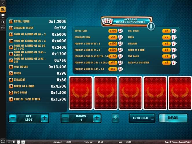 खिलाड़ियों के लिए कई वीडियो पोकर गेम उपलब्ध हैं। इनमें इक्के और आठ (एक हाथ और कई हाथ), ऑल इक्के, बोनस ड्यूसेस पोकर, बोनस पोकर, बोनस पोकर डीलक्स, ड्यूसेस वाइल्ड (एक हाथ और 4-100 हाथ), डबल बोनस पोकर, डबल डबल बोनस पोकर, डबल जोकर, जैकपॉट ड्यूसेस, जैक्स ऑर बेटर, जोकर पोकर, सुपाजैक्स और टेन्स ऑर बेटर शामिल हैं।
