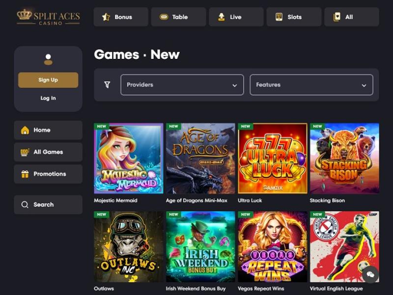 स्प्लिट एसेस में एक अच्छी-खासी स्लॉट लाइब्रेरी है, जहाँ कैसीनो Play'n GO, NetEnt, NextGen आदि जैसे प्रमुख डेवलपर्स के गेम उपलब्ध कराता है। यहाँ ढेरों अलग-अलग थीम और फ़ीचर उपलब्ध हैं, और आप कुछ प्रोग्रेसिव जैकपॉट भी जीत सकते हैं। मोबाइल स्लॉट भी उपलब्ध हैं, जिनसे आप चलते-फिरते खेल सकते हैं।