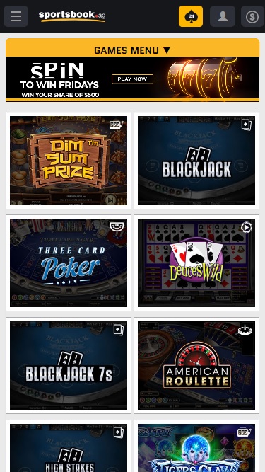 Sportsbook Casino BetSoft and Proprietary द्वारा संचालित है, जो पंटर्स को आपके वेब ब्राउज़र के माध्यम से सीधे कैसीनो के गेम खेलने का मौका देता है।अन्य खेल