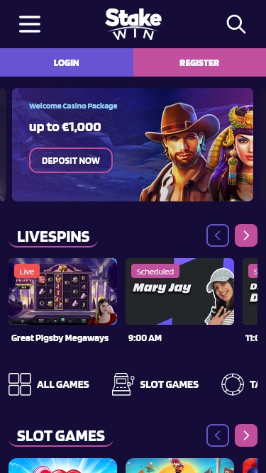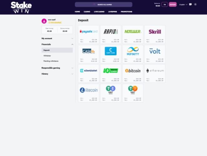 StakeWin Casino स्क्रीनशॉट