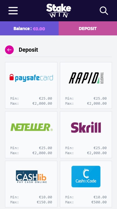 StakeWin Casino पर बैंकिंग विकल्प