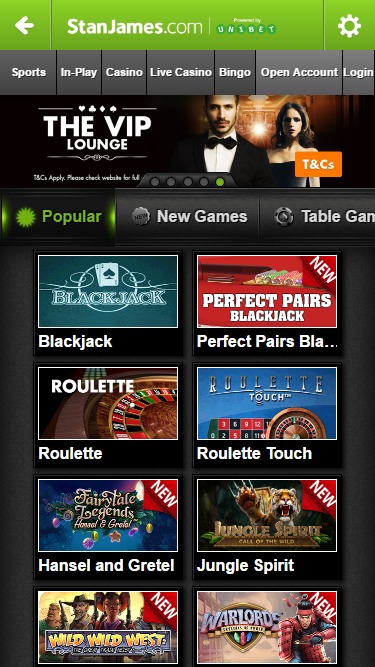 स्टेन जेम्स कैसीनो Amaya, Microgaming, Net Entertainment, Barcrest, Big Time Gaming, Genesis Gaming, lightningboxgames, Quickspin, Rabcat, Realistic Games, Stakelogic, IGT, Games Global, 2by2 Gaming, Aristocrat, Ash Gaming, bluberi, Blueprint Gaming, Games Warehouse, Leander Games, NextGen, Push Gaming, WMS and Geco Gaming द्वारा संचालित है, और कैसीनो के गेम एक वेब-आधारित इंस्टेंट प्ले प्लेटफ़ॉर्म के माध्यम से उपलब्ध कराए जाते हैं। कैसीनो का हर पहलू आपके वेब ब्राउज़र के माध्यम से उपलब्ध है, और आपको यहाँ खेलने के लिए कोई भारी-भरकम सॉफ़्टवेयर डाउनलोड करने की आवश्यकता नहीं है। मोबाइल प्ले भी उपलब्ध है, जिससे आप अपने स्मार्टफ़ोन या टैबलेट के माध्यम से गेम खेल सकते हैं।