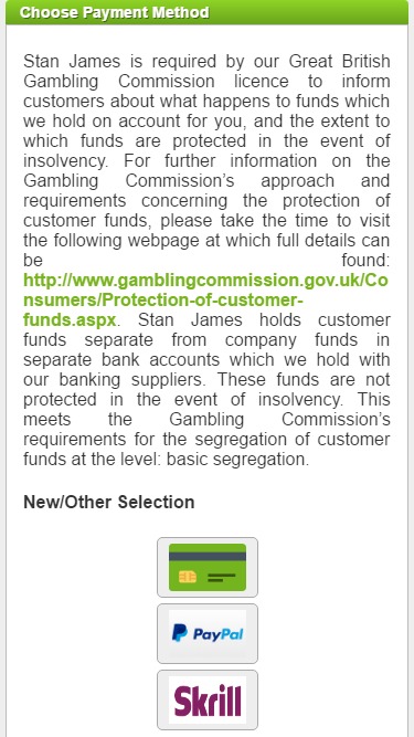 स्टैन जेम्स एक प्रमुख सट्टेबाजी ब्रांड है जो यूनाइटेड किंगडम से संचालित होता है। इस समूह की स्थापना 1973 में हुई थी और इसने पूरे देश में खुदरा दुकानों का एक आधार स्थापित किया है, जहाँ सैकड़ों लोग कार्यरत हैं। इस कैसीनो ने कई साल पहले अपना संचालन ऑनलाइन शुरू किया था और अब यह अपने ग्राहकों को खेल सट्टेबाजी, कैसीनो और पोकर सेवाएँ प्रदान करता है। इस कैसीनो की एक उत्कृष्ट प्रतिष्ठा है, और यदि आप सक्षम हैं, तो मैं आपको इस साइट पर खेलने की पुरज़ोर सलाह देता हूँ।