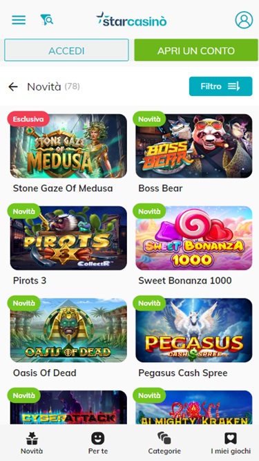 मानक कैसीनो खेलों के अलावा, स्टार कैसीनो अपने खिलाड़ियों को लाइव प्रसारण लाइव डीलर गेम भी प्रदान करता है।