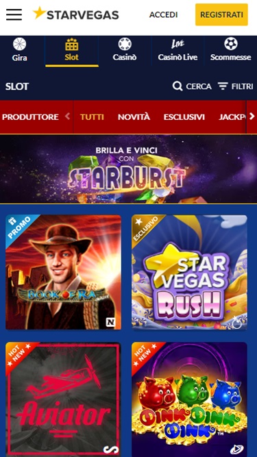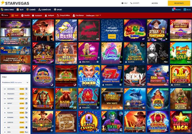 StarVegas.it पर खेलने के लिए वीडियो और क्लासिक स्लॉट मशीनों का एक अच्छा संग्रह उपलब्ध है, और ये गेम लगभग पूरी तरह से अपने-अपने डेवलपर्स द्वारा बनाए गए अनूठे गुण हैं। इससे आपको लॉर्ड ऑफ द ओशन, सीक्रेट एलिक्सिर, फैरोज़ रिंग, लकी लेडीज़ चार्म डीलक्स और दर्जनों अन्य गेम खेलने का मौका मिलता है। इसके अलावा, प्रोग्रेसिव जैकपॉट भी उपलब्ध हैं, जो किसी भी समय छह अंकों तक के इनाम दे सकते हैं। मोबाइल स्लॉट भी उपलब्ध हैं, जो आपको अपने स्मार्टफोन या टैबलेट के ज़रिए गेम खेलने का मौका देते हैं।