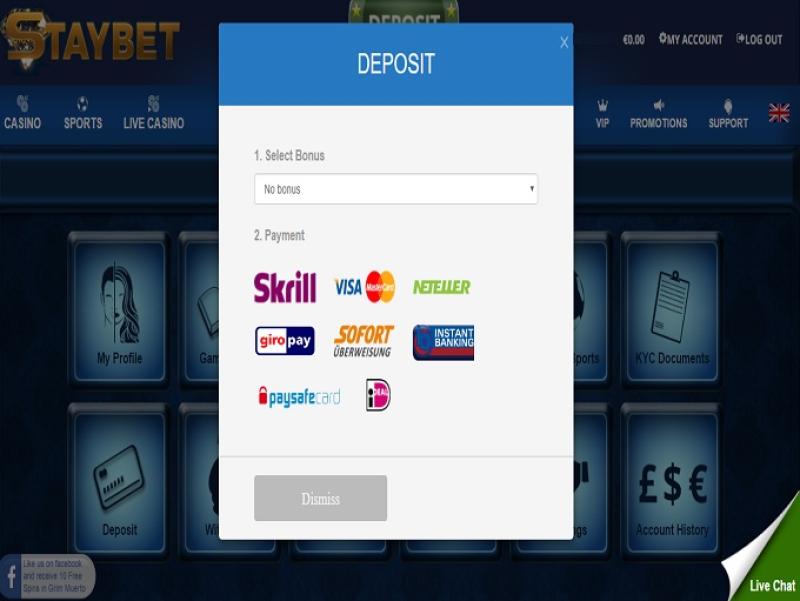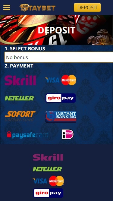 स्टेबेट कैसीनो में एक अच्छी बैंकिंग व्यवस्था है, जहाँ खिलाड़ी नेटेलर, स्क्रिल, मास्टरकार्ड और वीज़ा के ज़रिए पैसे जमा और निकाल सकते हैं। कैसीनो ई-वॉलेट के ज़रिए 24 घंटों में भुगतान करता है, जबकि क्रेडिट कार्ड से भुगतान 1-3 कार्यदिवसों में हो जाता है। ध्यान दें कि साप्ताहिक निकासी सीमा €1,000 और मासिक निकासी सीमा €10,000 है।