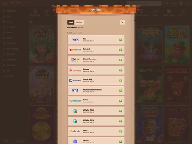 कैसीनो विभिन्न फिएट मुद्राओं और क्रिप्टोकरेंसी को स्वीकार करता है।