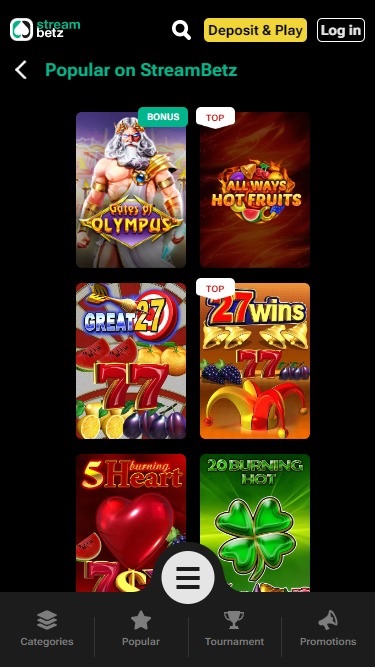 स्ट्रीमबेटज़ कैसीनो में ऐसे कई विकल्प मौजूद हैं, और हमें यह देखकर बेहद खुशी हो रही है, क्योंकि स्लॉट प्रशंसक यहाँ अपना समय बिताकर खूब मज़ा ले पाएँगे। कुछ सबसे लोकप्रिय स्लॉट डेवलपर्स में रिलैक्स गेमिंग, आईसॉफ्टबेट, पुश गेमिंग, नेटएंट, स्मार्टसॉफ्टगेमिंग, बीगेमिंग , गेमोमैट, गैमज़िक्स और कई अन्य शामिल हैं।