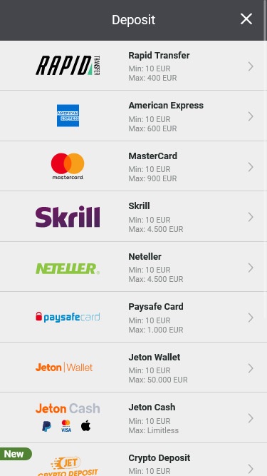 कैसीनो में नए खिलाड़ियों को कैसीनो में अपनी पहली जमा राशि पर एक स्वागत बोनस दिया जाएगा। ध्यान दें कि इस ऑफ़र के लिए दांव लगाने की शर्तें एक हफ़्ते के भीतर पूरी करनी होंगी और न्यूनतम और अधिकतम जमा राशि निर्धारित है। जीतने की राशि भी सीमित है और यह बोनस लाइव डीलर कैसीनो गेम खेलने पर मान्य नहीं है।
