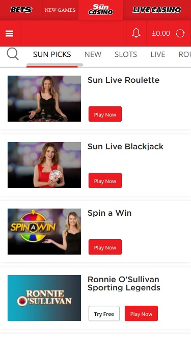 Sun Bets Casino स्क्रीनशॉट