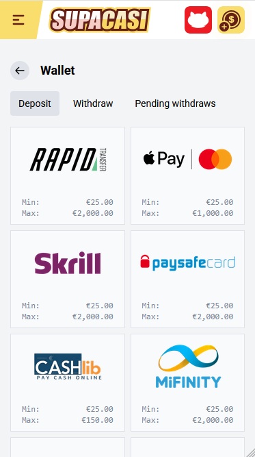 Supacasi Casino पर बैंकिंग विकल्प