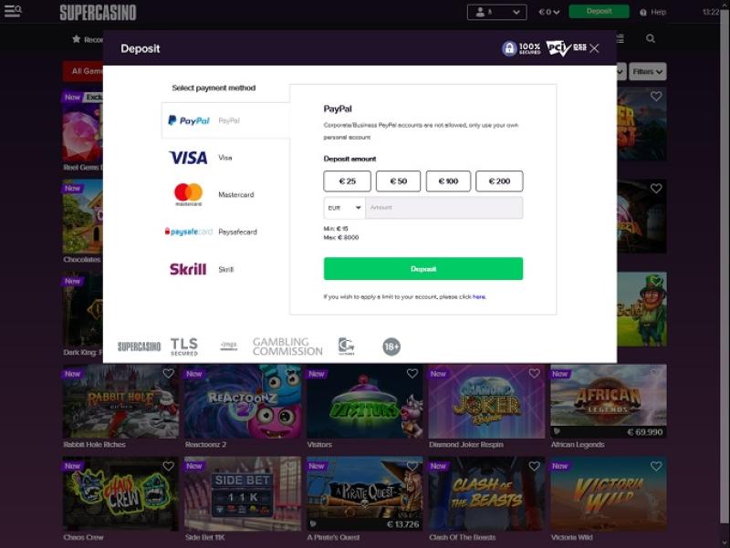 सुपरकैसीनो एक ऑनलाइन सट्टेबाजी साइट है जिसकी स्थापना 2008 में हुई थी और इसका संचालन नेटप्ले टीवी ग्रुप लिमिटेड द्वारा किया जाता है। यह कैसीनो समूह यूके में एक टेलीविज़न शो प्रसारित करने के लिए जाना जाता है जिसमें यह लाइव रूलेट गेम दिखाता है, और इसी नाम का यह ऑनलाइन कैसीनो लाइव डीलर और मानक कैसीनो गेम, दोनों प्रदान करता है। इस कैसीनो में भुगतान का समय तेज़ है और इसमें प्लेटेक की गेमिंग लाइब्रेरी भी उपलब्ध है, जो इसे खेलने के लिए एक दिलचस्प और बेहतरीन जगह बनाती है।