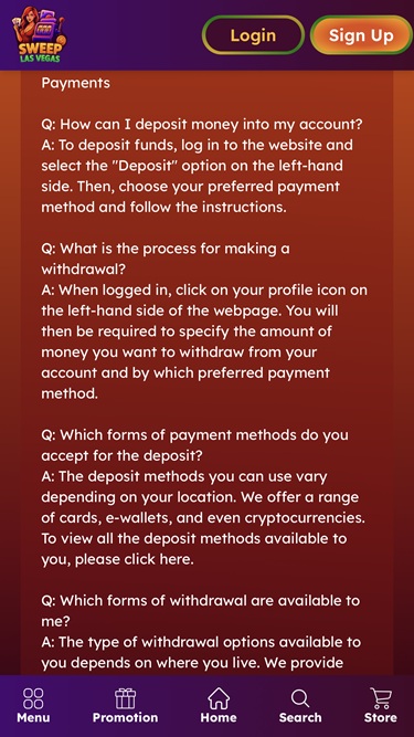 यह भी ध्यान रखना ज़रूरी है कि आप इस स्वीपस्टेक्स कैसीनो की सभी सुविधाओं का अनुभव अपने iOS या Android डिवाइस पर भी कर पाएँगे। पूरी वेबसाइट को मोबाइल गेमिंग के लिए पूरी तरह से अनुकूलित किया गया है, जिससे आप मोबाइल ब्राउज़र के ज़रिए अपने अकाउंट में लॉग इन कर सकते हैं।