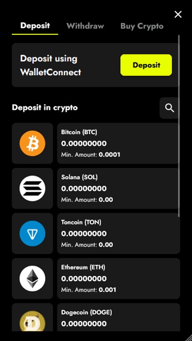 कैसीनो कई क्रिप्टोकरेंसी और यूरो को फिएट मुद्रा के रूप में स्वीकार करता है।