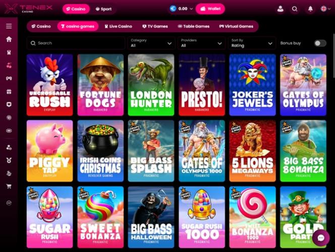 टेनेक्स कैसीनो एक आधुनिक जुआ साइट है जो कनाडा, स्वीडन, डेनमार्क, नॉर्वे, पोलैंड, फ़िलिपींस और फ़िनलैंड के खिलाड़ियों को स्वीकार करती है, और इसका एकमात्र उद्देश्य कैसीनो गेम्स और स्पोर्ट्स बेटिंग विकल्पों का एक विशाल संग्रह प्रदान करना है। यह ब्रांड स्लॉट्स, लाइव डीलर्स, टेबल गेम्स और इंस्टेंट-क्रैश गेम्स की एक विस्तृत सूची के साथ-साथ विभिन्न बेटिंग विकल्पों, प्रमोशन और बोनस भी प्रदान करता है।