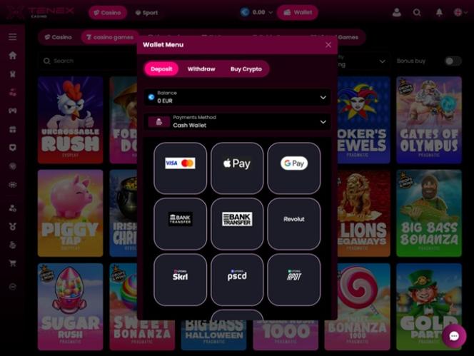 टेनेक्स कैसीनो में जमा करना और निकालना आसान है, क्योंकि यह ब्रांड खिलाड़ियों को अपने फंड का प्रबंधन करने के लिए कई विकल्प प्रदान करता है, जिनमें वीज़ा , मास्टरकार्ड, स्क्रिल , नेटेलर, ऐप्पल पे , गूगल पे , रेवोल्यूट और बैंक वायर ट्रांसफर शामिल हैं। वेबसाइट बिटकॉइन , एथेरियम, लाइटकॉइन , सोलाना, ट्रॉन , टीथर और रिपल सहित कई क्रिप्टोकरेंसी भी स्वीकार करती है।